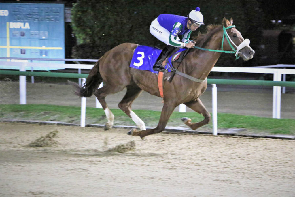 03/07 – Gávea – FRANCIMAR BALADA, 5 anos filho de Courtier em Estrela Punk por Mastro Lorenzo, criado no Haras Santarém para a Coudelaria Bob Mussi, venceu sua 3ª carreira em 1300 areia no tempo de 81´1 por 3 1/4 corpos. Francimar Balada teve a condução de A M Silva e treinamento de M Palhares.