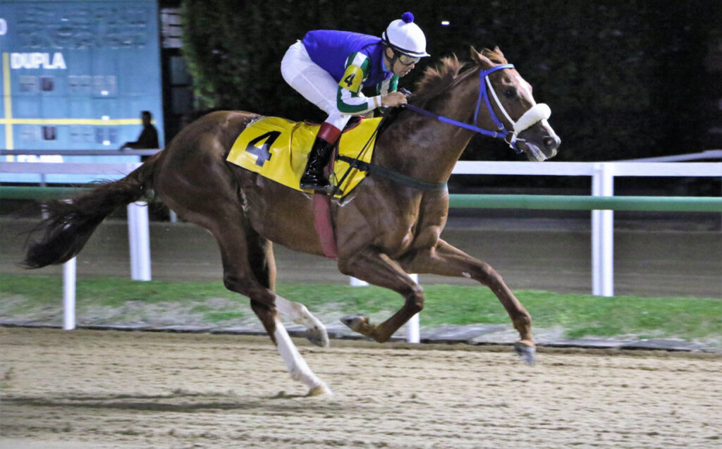 17/07 – Gávea – FRANCIMAR BALADA, 5 anos filho de Courtier em Estrela Punk por Mastro Lorenzo, criado em regime de pensionato no Haras Santarém para a Coudelaria Bob Mussi, voltou a vencer na Gávea e conquistou sua 4ª vitória em 1300 areia no tempo de 79´65 por 2 1/4 corpos. Francimar Balada teve a condução de A M Silva e treinamento de M Palhares.