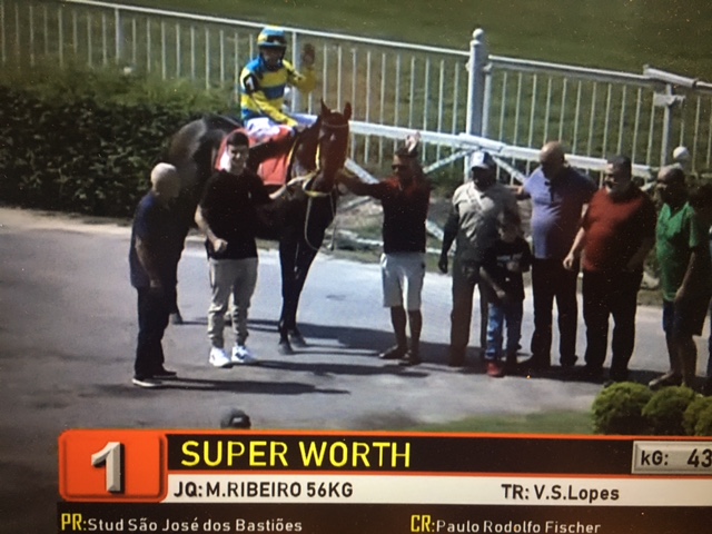 01/04 – Cidade Jardim – SUPER WORTH, 2 anos filho de Rally Cry em Story of Us por Roi Normand, criado nos campos do Haras Santarém para Paulo Rodolfo Fischer seu criador e de propriedade do Stud São José dos Bastiões, venceu em 1000 grama macia no tempo de 57´5 por 1 1/2 corpos. Super Worth foi conduzido por M Ribeiro e é treinado por V S Lopes.