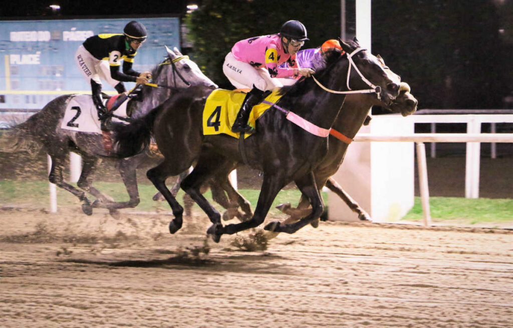 02/10 – Gávea – XIANGGANG ROYAL, 3 anos filha de Courtier em Royal One por Tiznow, de criação do Haras Santarém e propriedade do Haras Nova Vitória, venceu sua 2ª carreira (1 Cristal e 1 Gávea) em 1300 areia pesada no tempo de 82´66 por cabeça. Xianggang Royal foi conduzida por A M Silva e é treinada por C P Almeida.